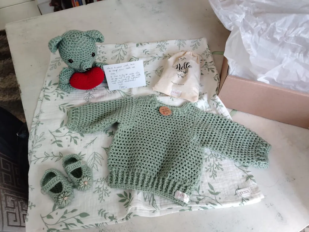 And it even smells like baby and has a note from the granny who crocheted the jersey!!