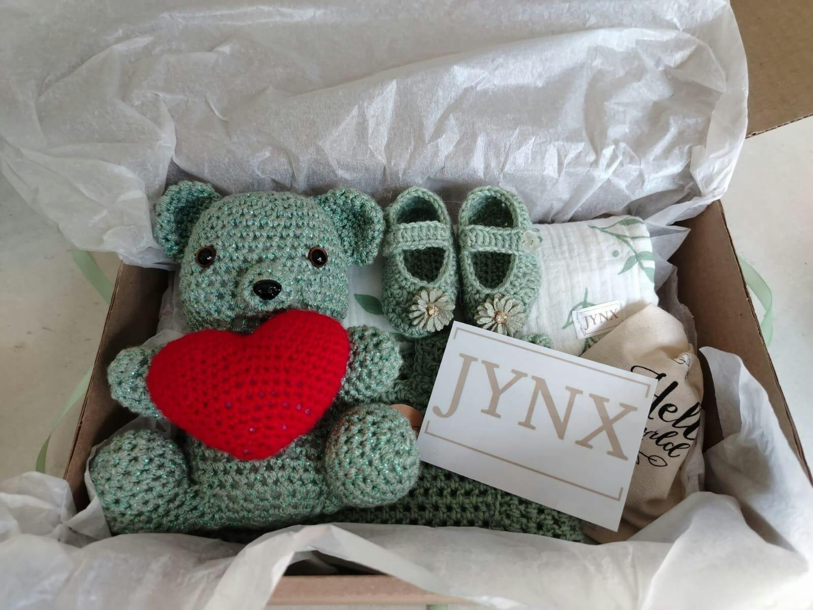 A: Yes! Our signature brown cardboard boxes are included with the ready-made gift boxes. We also have cardboard boxes available, at a small additional fee, if you would like your individual choice of gifts packed into a box. (Our “Bespoke Baby” section will be coming soon!!)